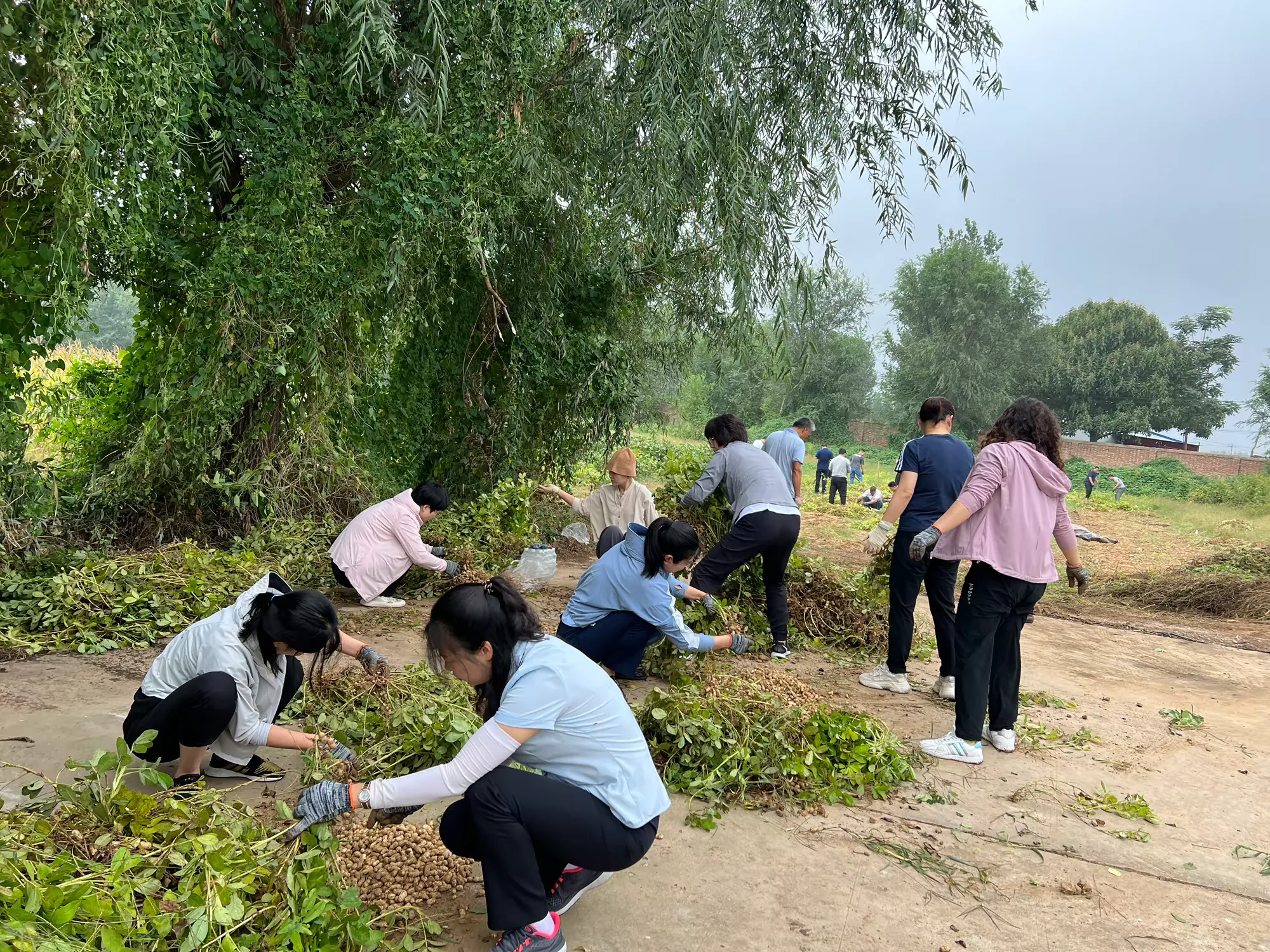 躬身天地间,细看万物长。尽管大家额上冒汗、衣服沾土,但身处田园与大自然同频共振,满目的青绿清爽而治愈。当一粒粒饱满的花生破土而出、火红的辣椒迫不及待地离开枝头、绿油油的大葱连根拔起、一个个在绿叶掩映下捉迷藏的瓜果被翻找出来时,收获的快乐弥漫在每个人的脸上,人间至味,不过此刻的一方烟火、四时田园。