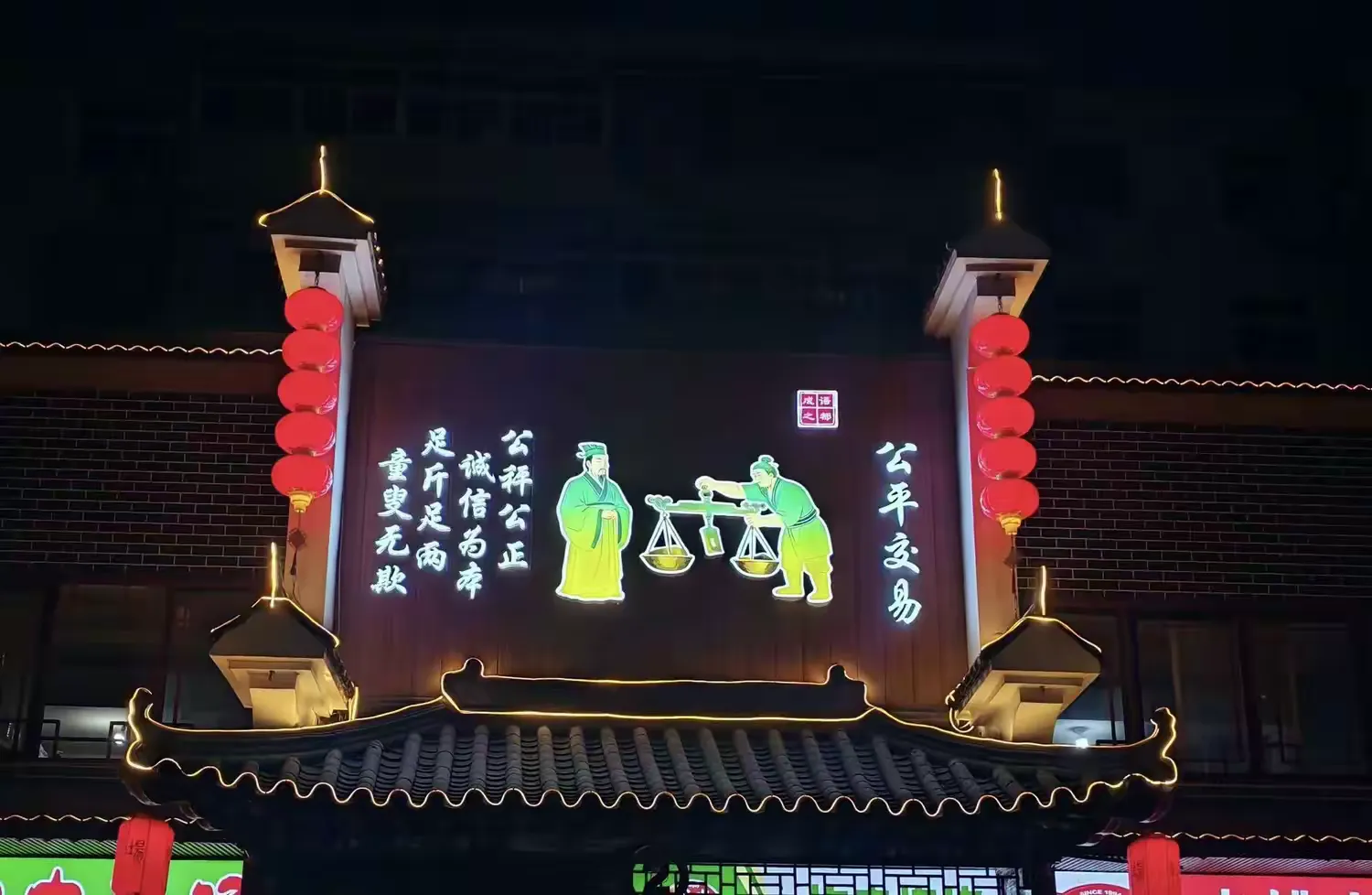 “公平交易,公秤公正,诚信为本,足斤足两,童叟无欺”——这坊上刻的是最朴素的交易底线,也是市场最高的经营准则。秤杆之上是斤两,秤杆之下是良心。